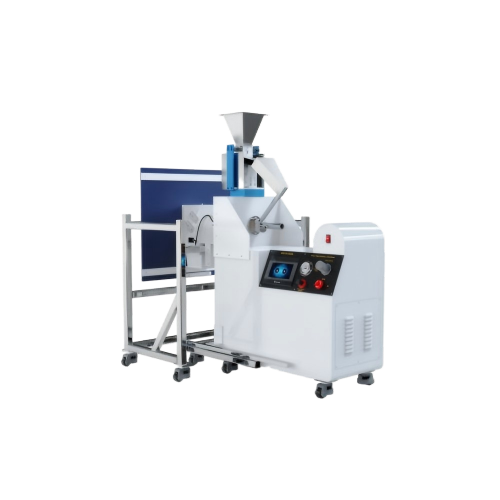 砾石或其它介质放在加料斗里,加料斗里的振动送料装置将料送到送料斜槽中。由底下高速空气而产生的真空,介质落到送料斜槽中。介质被吸入喷嘴中,被空气喷射器发射到试样上。介质撞上试样后落入碎石箱中。